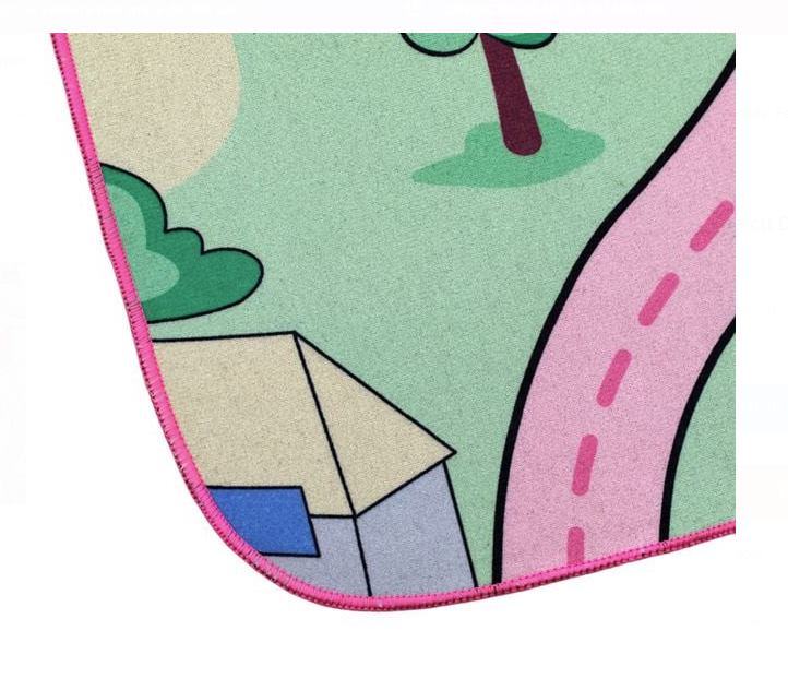 Covor dreptunghiular cu un design tematic de fermă și drumuri. Fabricat din materiale sigure, are o suprafață antiderapantă și este perfect pentru a crea un spațiu de joacă vesel și confortabil
