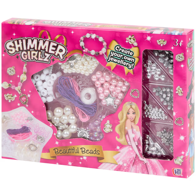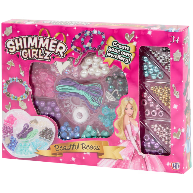 Un kit creativ cu mărgele, șnururi și accesorii pentru a crea brățări, coliere și alte bijuterii personalizate.