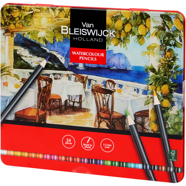 Creioane colorate acuarelabile, de la Van Bleiswijck. Pot fi folosite atât uscate, cât și cu apă, pentru a crea efecte artistice deosebite.