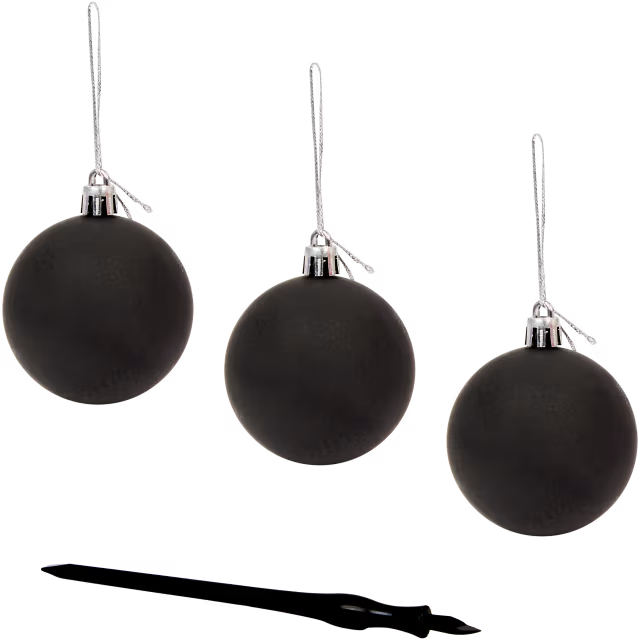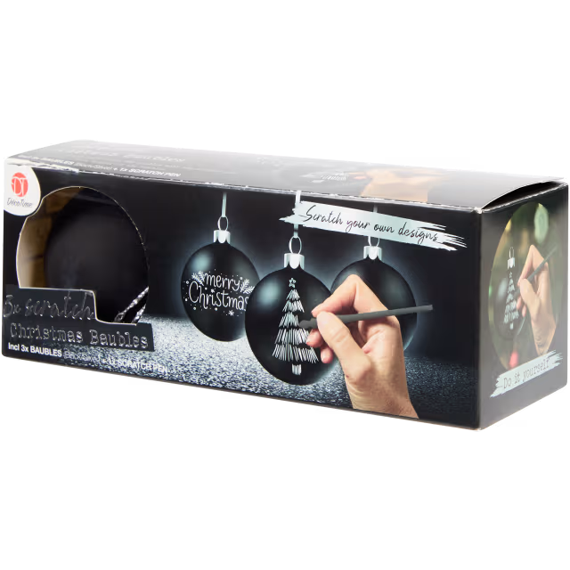 Globuri decorative de Crăciun cu o suprafață neagră care, atunci când este răzuită, dezvăluie culori festive. Perfecte pentru a crea decorațiuni personalizate.
